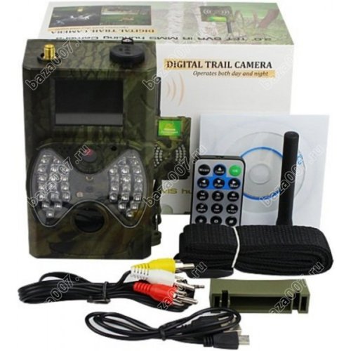 Влагозащищенный корпус камуфлированной окраски позволяет вешать камеру даже в лесу и оставлять там на длительное время, так как в режиме ожидания она может работать до 2 месяцев. Для крепления камеры предусмотрен специальный ремень и дополнительно защитный бокс с более гибкой возможностью крепежа под разным углом. Питание осуществляется 8 батарейками АА или от внешнего источника питания 9V (приобретаются отдельно). Фото или видеозапись идет на карточку SD (до 32 Гб) и отправляется Вам на телефон в виде MMS или на электронную почту через GPRS. Управление и настройка камеры осуществляется пультом д.у. входящим в комплект.Филин HC-300M передаст фото или видео в течение 1 мин. на Ваш телефон или электронную почту.