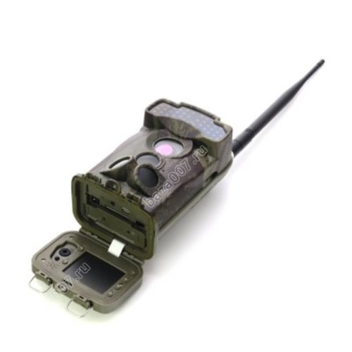 Фотовидеорегистратор скрытного наблюдения за животными в естественной среде обитения. Прибор оснащен GSM модулем и может передавать фото и видео материалы по ММС. Для удаленного управления прибором используются СМС команды. Узкоугольный объектив и чувствительный CMOS сенсор размерностью 5 Мп обеспечивают качество видео FullHD 1440x1080 и хорошую детализацию по глубине. Для ночной съемки предусмотрены инфракрасные светодиоды с дальностью освещения не менее двадцати метров. Датчик срабатывания имеет три степени чувствительности и обеспечивает максимальную дальность срабатывания до двадцати пяти метров. Отснятые фото и видео материалы сохраняются на карте памяти максимальным объемом 32 Мб. Питается фотоловушка от двенадцати батареек формата АА.