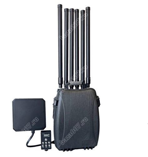Работает в 2 режимах с всенаправленными штыковыми антеннами - режим купольной защиты и режим подавления дронов в заданном направлении с направленной антенной.